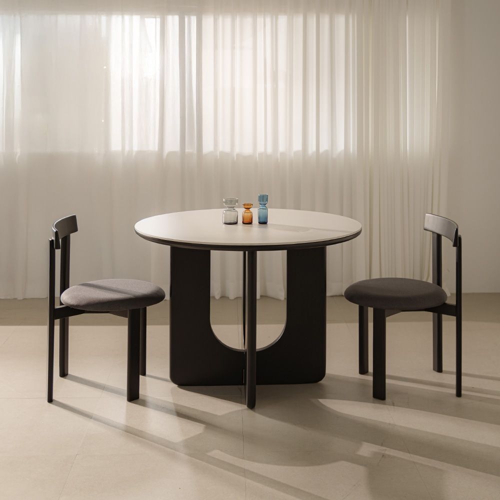 킨디 소리없는 세라믹 원형 테이블 식탁 세트 1000 2인용 4인용 화이트 블랙