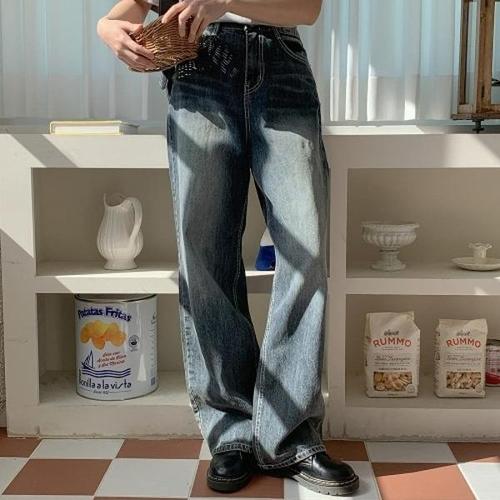 [신상오픈런]|OHP69E9|펫루리 워시드 옆 여성 레트로 데님팬츠 Y2K 스트레이트_18173524_597559