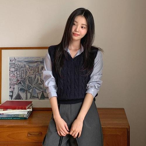 [모어렌][모어렌] [MADE] 멜른 케이블 브이넥 울 니트 조끼 [tvs0095]