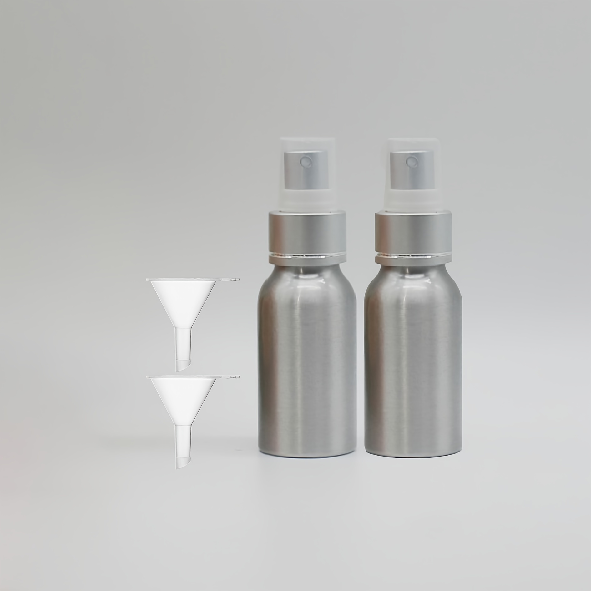 TEMU 2팩 50ml 알루미늄 스프레이 타입 화장품 리필 병, 깔때기 포함, 여행용 향수 스프레이 병, 리필 가능한 누수 방지 화장품 용기, 휴대용 향수 디스펜서, 여행 사이즈, 전송 깔때기, 에센셜 오일 디스펜서