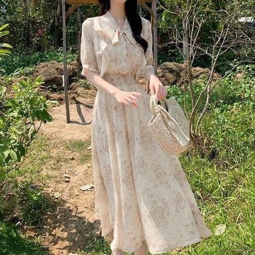 이쁘다요 땡처리 잔꽃 쉬폰 리본 여리여리 롱 원피스 플라워 WFLMN4A