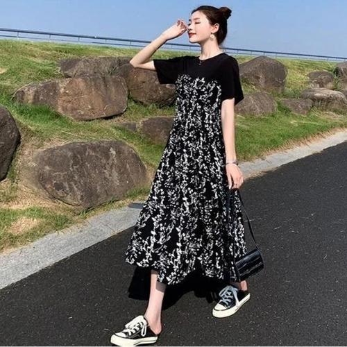 [엄지척]여성 플라워 패턴의 반팔 롱원피스 하이웨스트 원피스_19912399_667501