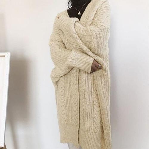포근 케이블 니트 꽈배기 롱 코트 오버핏 가디건 로브 겨울아우터 점퍼 빅사이즈