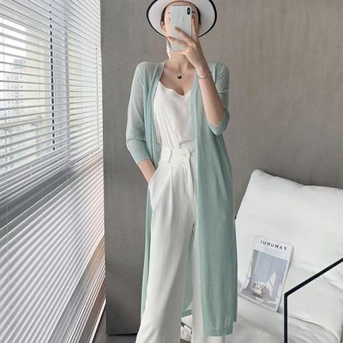 여름 여성 얇은 7부 로브가디건 롱가디건 시스루 비치로브 쿨가디건