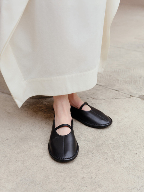 [로서울] Round toe flat slingback Black