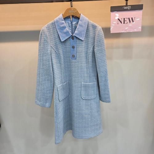 [로엠]배색카라 트위드 블루원피스(RMOWE23R11)_SH