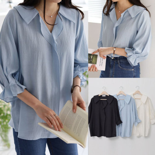 루스리더 여성 라운드 플라워 프릴 블라우스 E1287