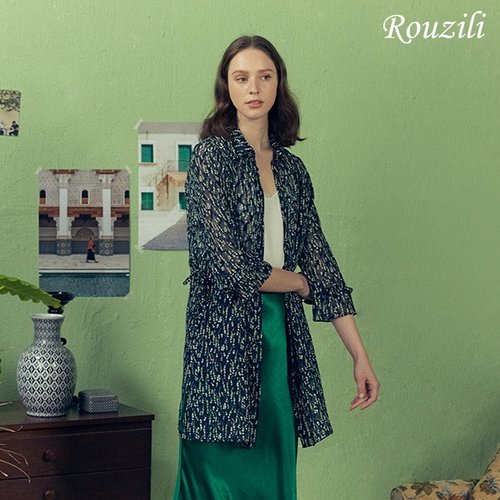 [로질리][1종]자카드 쉬폰 블라우스_네이비
