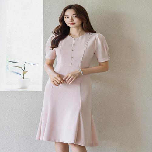 [스타일온미][스타일온미] 로트리 진주 브이넥 핀턱 소매 머메이드 원피스