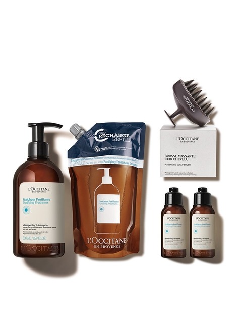 [록시땅] [기프트] [단독] [두피쿨링] 퓨리파잉 프레시니스 샴푸 1L 세트 (+브러쉬+디럭스 2종)