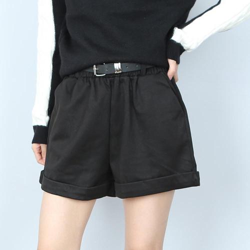 파라노말샵 / (벨트포함) 만두 롤업 밴딩 숏 반바지 벨트 세트 (파