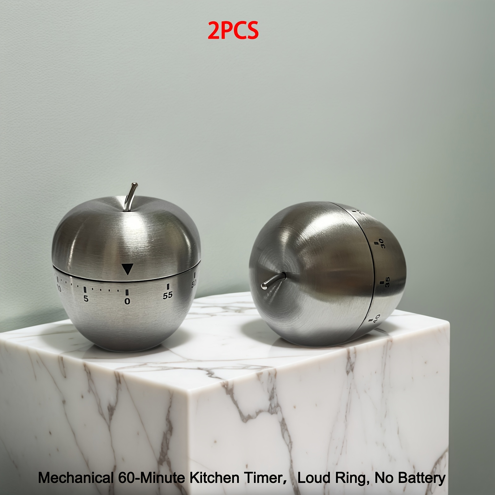 TEMU 신형 주방 타이머, 큰 알람 소리, 배터리 불필요, 기계식 사과 모양 스테인리스 스틸 베이킹 타이머, 60분 주방 타이머, 요리 타이머, 사과 모양 타이머, 학습 훈련 타이머, 베이킹 요리 알림, 피아노 연습 타이머|타이머
