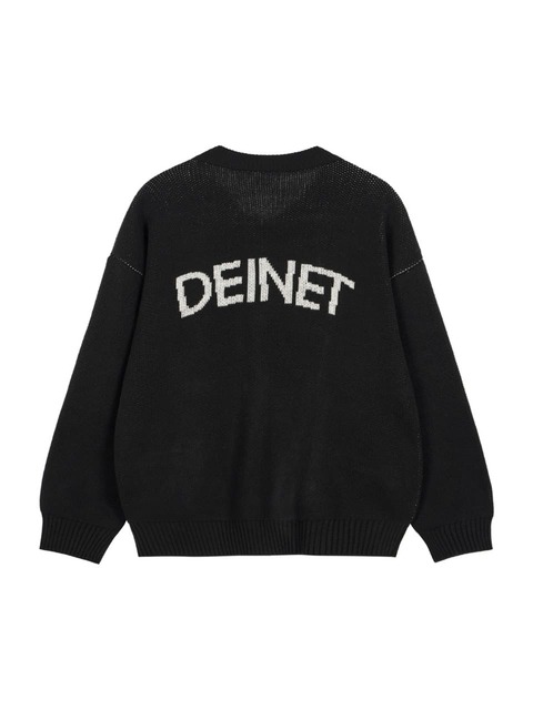[다이닛] D JACQUARD LONG KNIT ZIP-UP IN BLACK