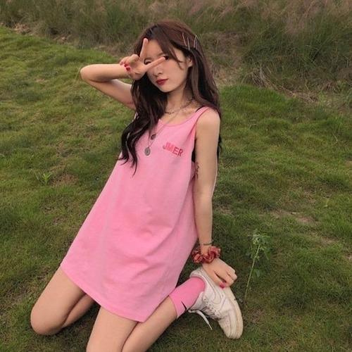 민소매 나시 롱 309 그레이 여성 URK 핑크 나시 롱나 WFLQMWV
