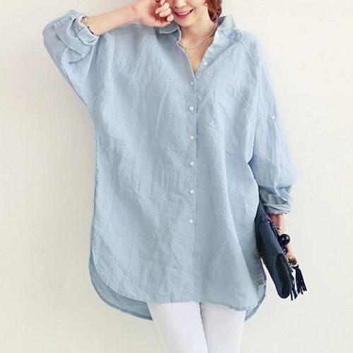 아뗄릭 여성용 루즈핏 옆트임 카라 심플 롱 셔츠 14461