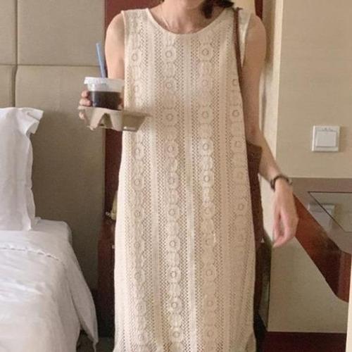[엄지척]여성 여름 니트 롱 원피스 민소매 나시 펀칭 휴양지_19871177_667501