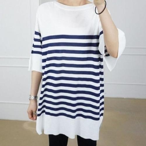 [엄지척]티셔츠 7부 니트 롱 트임 스트라이프 빅사이즈_19679337_667501