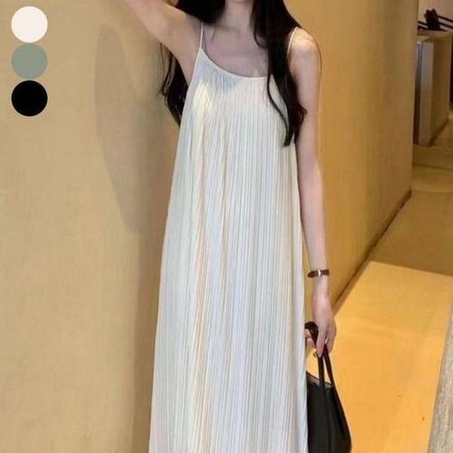 [셀러허브_여성트랜드패션]여자 맥시드레스 롱원피스 여름 편한 끈나시 플리츠
