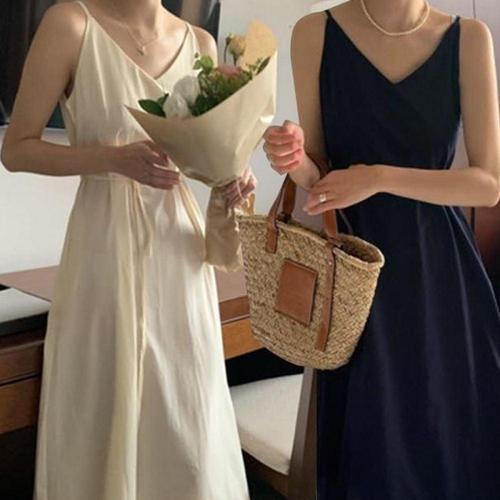 끈나시 롱원피스 롱드레스 드레스 해변 휴가 튜 WFLQATR