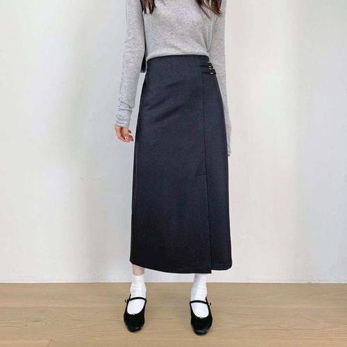 [옷자락] 여자 데일리 스판 h라인 랩 버클 롱 스커트