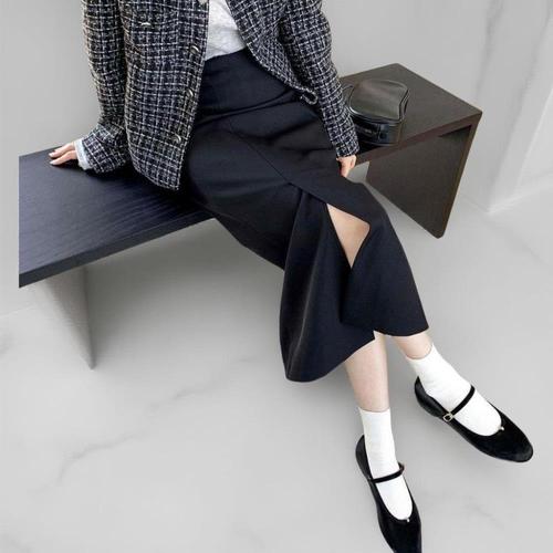 [다잇템]여성 일자 스타일 일상용 롱 랩 신축성 스커트