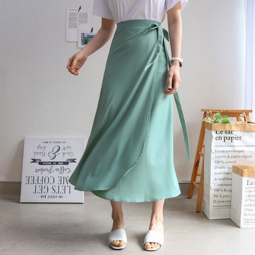 레이츄 / 컬러링 A라인 무지 여름 롱 랩 스커트 (5컬러)