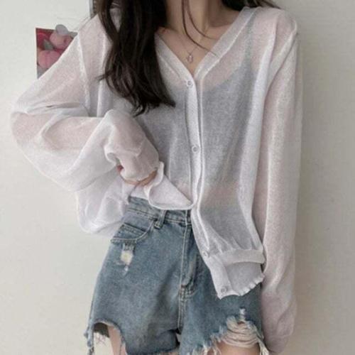 패션스타일 얇은 롱 여성 쿨 가디건 부 시스루 여름 로브 비치로브