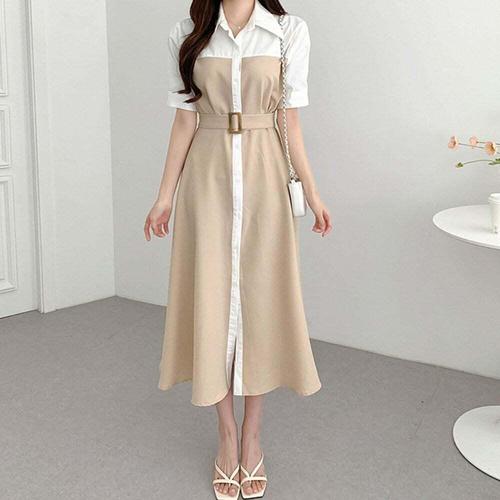 [셀럽하우스]배색 MEVW4422 디자인 여성 롱셔츠원피스 여름 하객룩 롱원피스