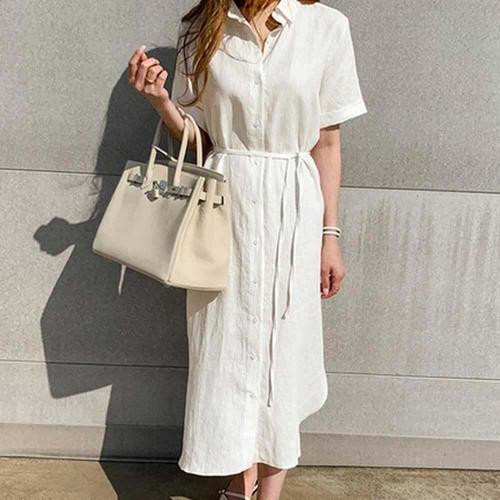 [셀럽하우스]흰색원피스 TUUZ4551 린넨원피스 반팔 롱셔츠