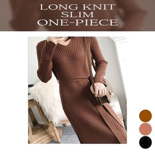[엄지척]여자 옆트임 데일리 이너 니트 브이넥 롱 원피스_19870919_667501