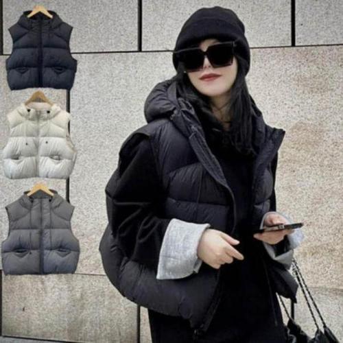 [셀러허브_여성트랜드패션]여자 쪼끼 레이어드 숏 패딩조끼 크롭기장 루즈핏 후드 아우터