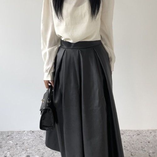 클루이가넷 / 하이웨스트 레자 롱 주름 스커트 두께감 있는 페이크레더 플리츠