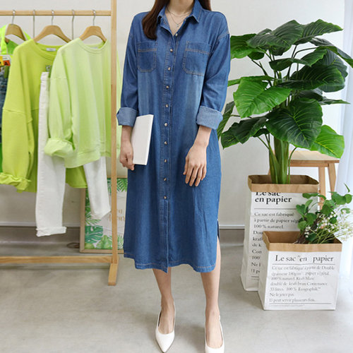 아우터 롱원피스 광택 진청 데님 롱셔츠원피스 (3ipXE)