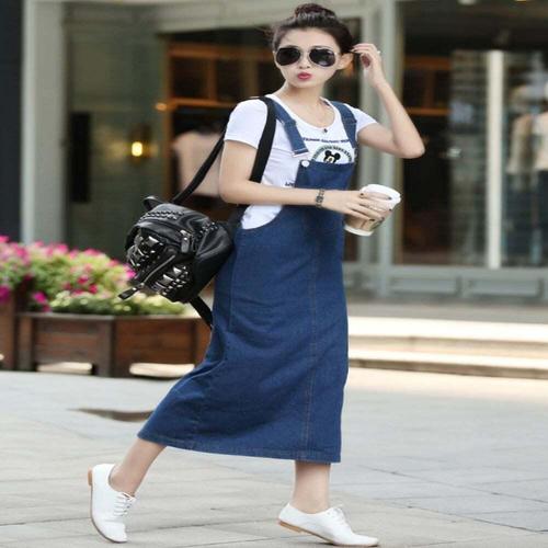 [셀럽하우스]여름 GWDS4685 편하고 시원한 캐주얼 진청 데님 롱 멜빵 치마