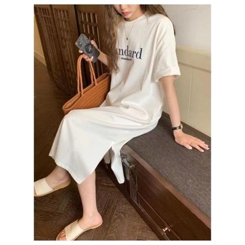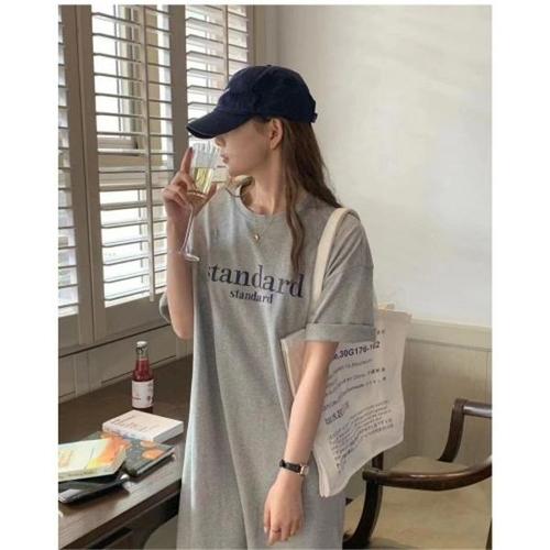 상상그이상 여성용 국내제작 간절기 베이스볼 원피스 빅사이즈 레터링 롱티셔츠 심플 포인트 사계절 면 데일리룩