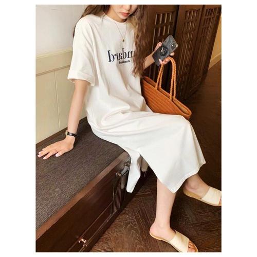 여성 여름 빅사이즈 롱 반팔티셔츠 원피스 하프기장 루즈핏 롱반팔티