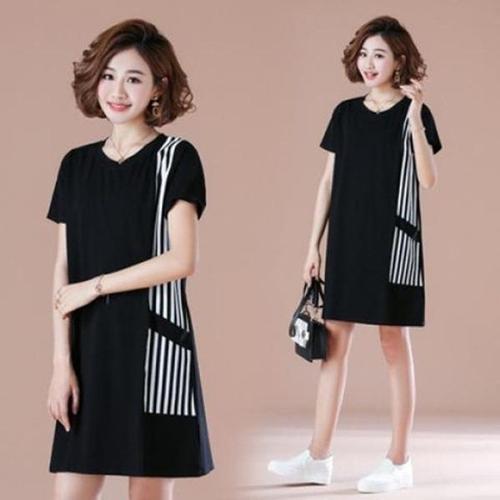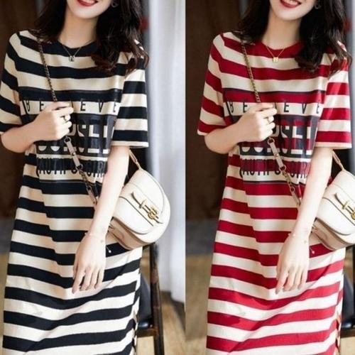 [엄지척]S08170 옆선줄무늬 루즈 얇고 시원한 반팔원피스 롱티_19873443_667501