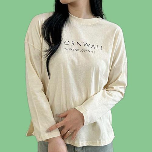[모노무드]LMO 여성용 스프링 오텀 로고프린트 코튼 스타일반팔티 롱티 스탠다드 상의 레몬