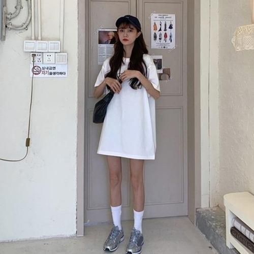 [엄지척]3컬러 숏원피스 반팔 롱티 박스티 무지 반팔티셔츠 여_19910210_667501