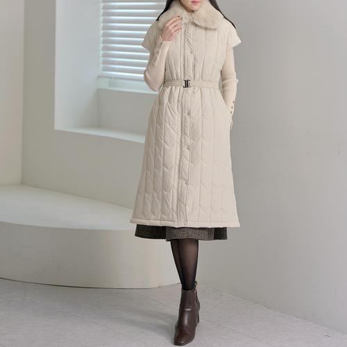 반야스토리 여성용 벨트 롱패딩 조끼 PP223