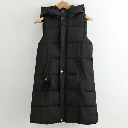 [셀럽하우스]여성 SHNM1483 롱 후드 패딩 집업 조끼 베스트 블랙