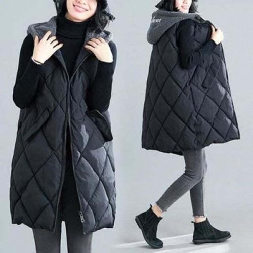ZAJA 여성 가을 겨울 후드 다운 루즈핏 롱 조끼 패딩