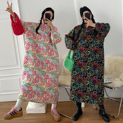 [유야]여성 양기모 후리스 플라워 롱 원피스 -FOP0428- 겨울