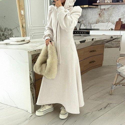 투니스 여성 후드 슬림 웨이스트 러플 롱 원피스