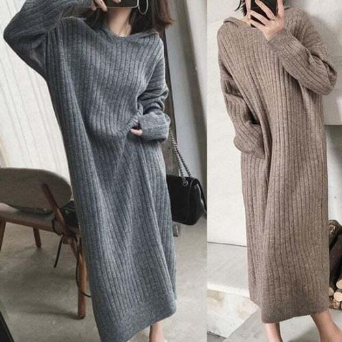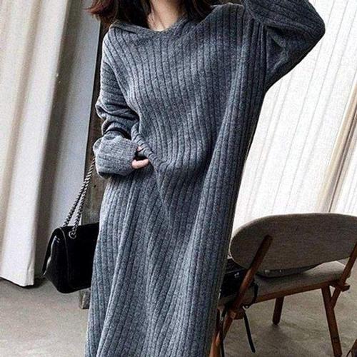 [셀럽하우스]보온 NSFZ6305 후드 원피스 골지 그레이 봄 데일리 여 롱 겨울