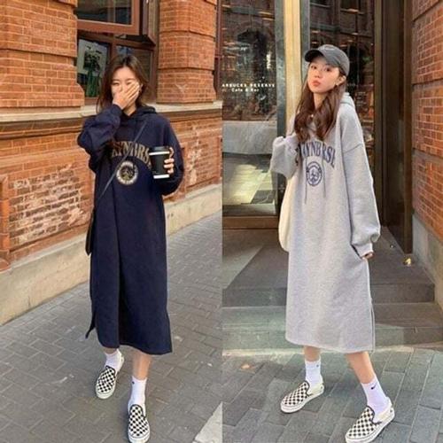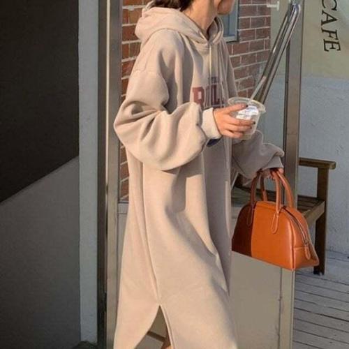 AOKADA 오버핏 롱 후드 맨투맨 기모 원피스 여성 가을 겨울