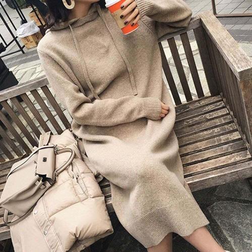 [셀럽하우스]3컬러 TPWY9018 니트 후드 롱원피스 니트원피스 캐주얼원피스