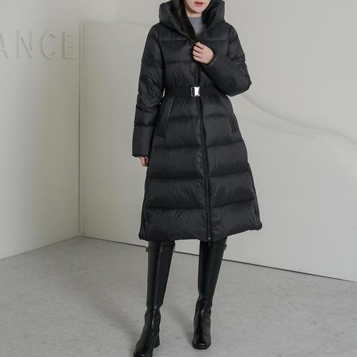[로즈미] [55~77] 하네 벨티드 후드 롱패딩