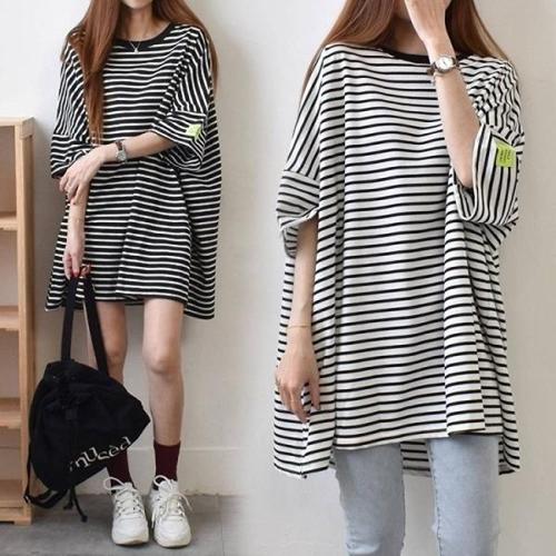 [엄지척]Altertum 스트라이프 여성 롱 반팔티_19629080_667501