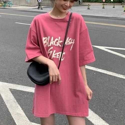 [엄지척]여성 핑크색 박시핏 롱 반팔티 여름 스트릿 20대_19615521_667501